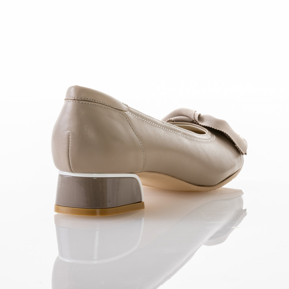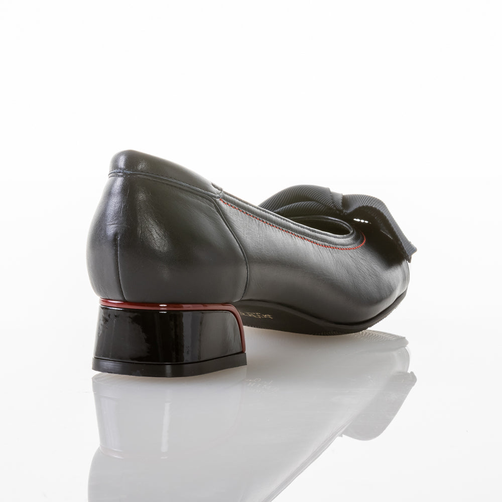 ミハマらしい上品なリボンモチーフに、つま先のラインとリンクさせたヒールの差し色。