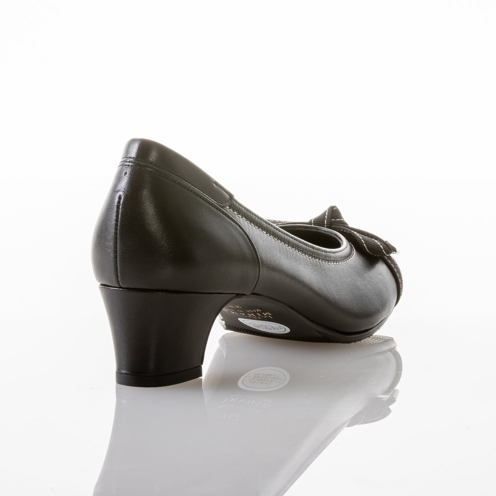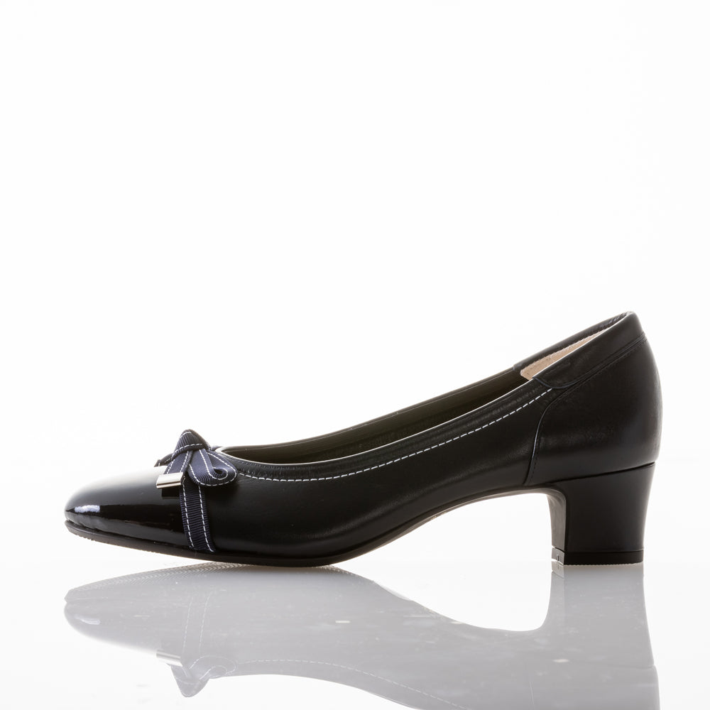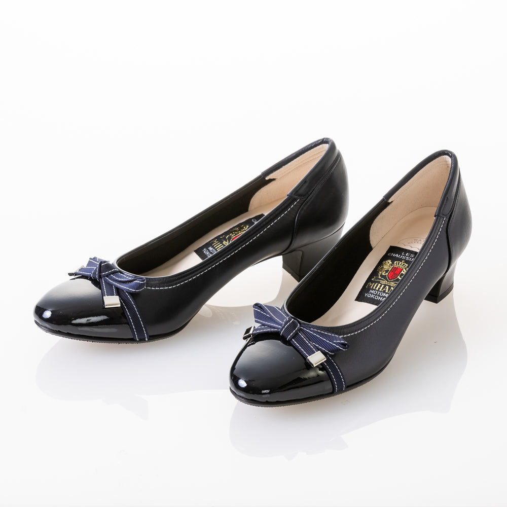つま先のエナメル素材が上品さを演出し、ステッチ入りの小ぶりなリボンが、さりげなく“大人かわいい”印象に仕上げてくれます♡