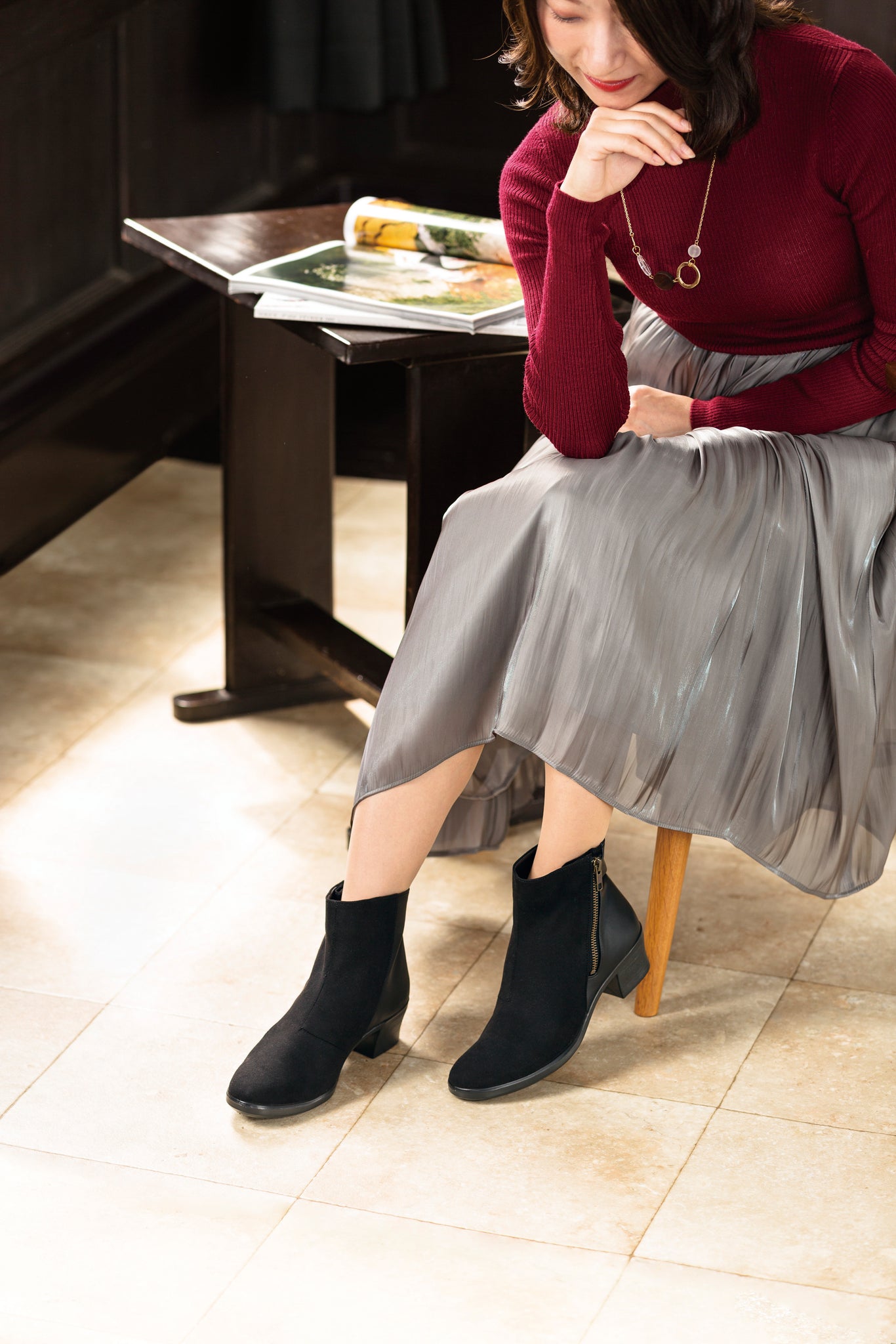 ファスナーが斜めに入っていて、すっきり感のある女性らしいデザインです。